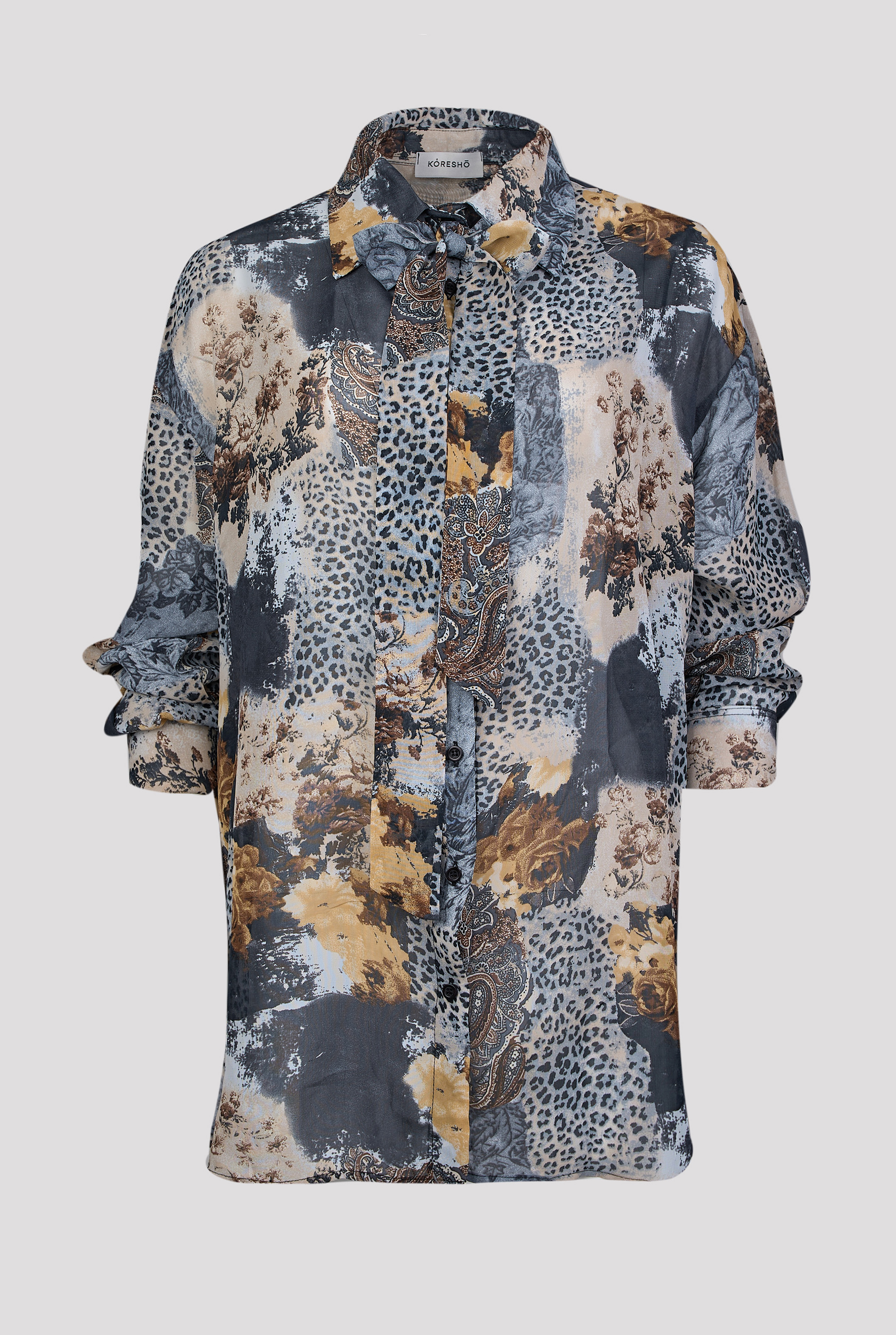 Πουκάμισο σε χαλαρή γραμμή με κουμπιά στο μπροστινό μέρος και μακρύ μανίκι